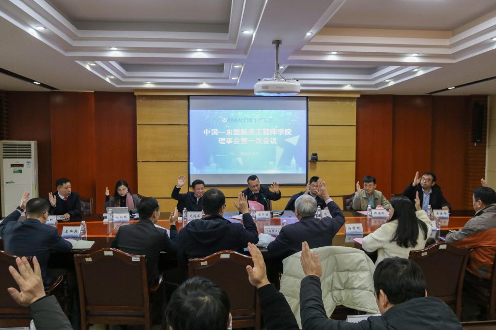 12月18日上午,中国—东盟航天工程师学院理事会成立大会在飞天楼517顺利召开。学校校长吴尽昭、副校长孙山林及理事会成员近30人参加了会议。