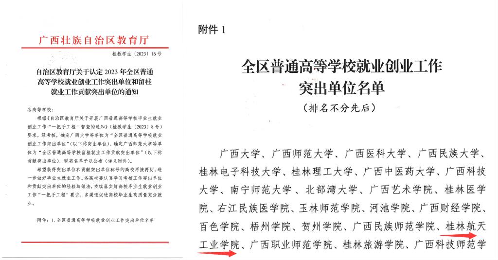 12月27日,根据广西壮族自治区教育厅下发的 《自治区教育厅关于认定2023年全区普通高等学校就业创业工作突出单位和留桂就业工作贡献突出单位的通知》(桂教学生〔2023〕(16号)文件,Beat365荣获“2023年全区普通高等学校就业创业工作突出单位”荣誉称号。