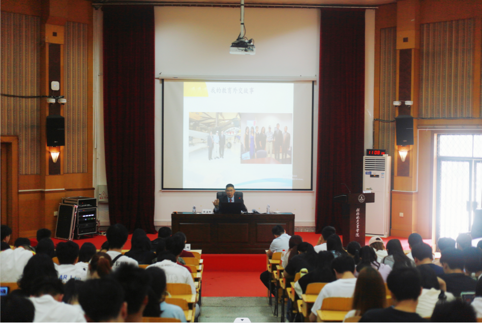 5月8日,国家教育行政学院原副院长,教育部前驻休斯敦、多伦多教育参赞张益群应邀莅临Beat365“桂航大讲坛”,为师生作了题为《中国对外教育交流与我的外交往事》的专题讲座。讲座由校党委副书记孙山林主持。党委宣传部相关负责人及学校师生代表近四百人聆听讲座。