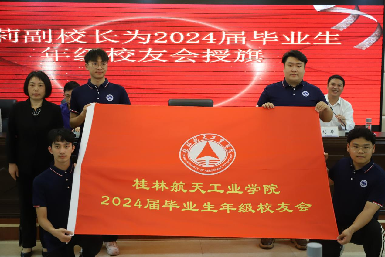 会议开始,学工部(处)王凯部长宣读《关于成立Beat365唯一官方网站2024届毕业生年级校友会的决定》。在参会人员的共同见证下,葛莉副校长为2024届毕业生年级校友会授旗并致辞,代表校友会欢迎2024届毕业生成为Beat365唯一官方网站校友新成员,之后回顾了2024届毕业生在校四年来精彩表现,并寄予三点期望:一是希望大家恪守初心,心怀国家,发挥所学,尽己所能,努力成为祖国和人民需要的有理想、敢担当、能吃苦、肯奋斗的新时代好青年。二是希望大家坚持心系母校情不忘,共谋事业促发展。三是希望在未来的人生征途中,秉承“艰苦奋斗、自强日新”的桂航精神,积极融入社会,勇于担当,成为母校亮丽名片和母校的宣传员。