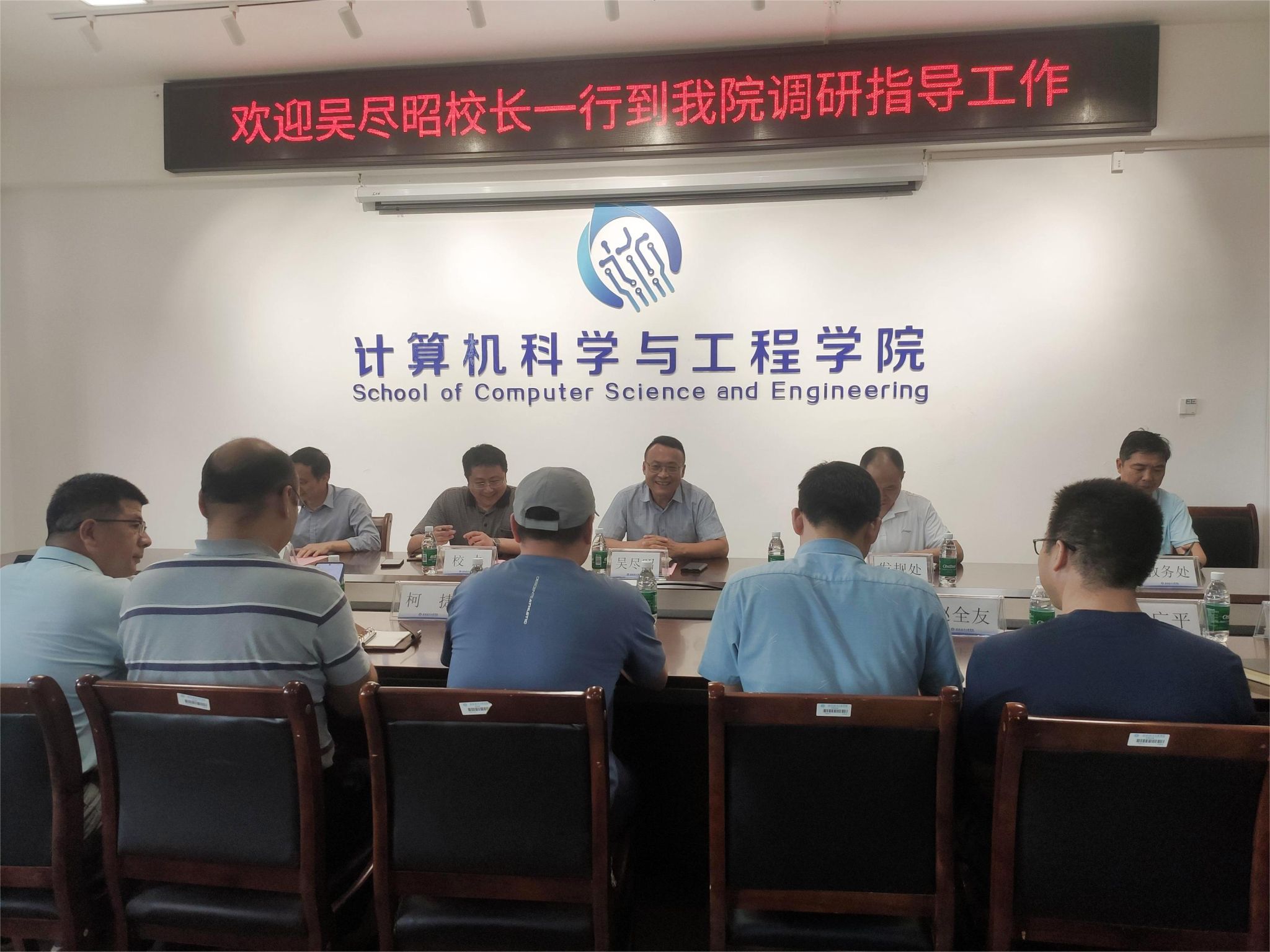 5月28日下午,校长吴尽昭带领党校办、发规处、人事处、教务处相关负责人到计算机科学与工程学院开展学科专业布局优化调研。学院领导班子、空间信息与数字技术专业专任教师代表参加了会议。