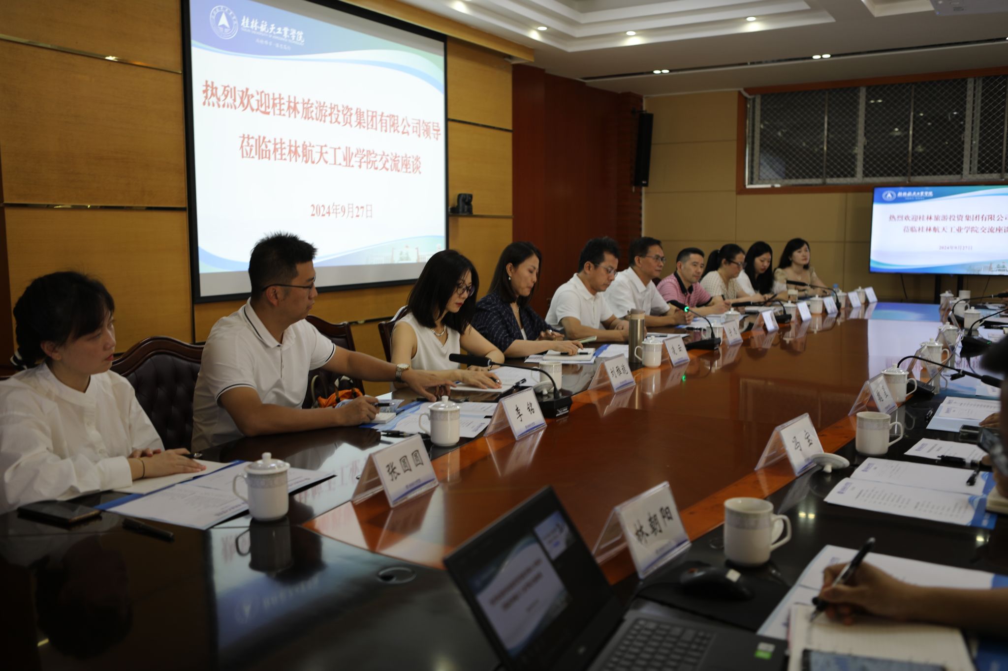 9月27日下午,桂林旅游投资集团有限公司党委书记董事长宁志一行10人来校调研交流。校长吴尽昭、副校长张烈平热情会见宁志一行并出席座谈会。双方就促进低空旅游校企合作事宜进行了深入交流。学校党校办、发规处、教务处、科技处、航空服务与旅游管理学院、航空宇航学院及广西(桂林)低空旅游研究院相关负责人参加座谈。
