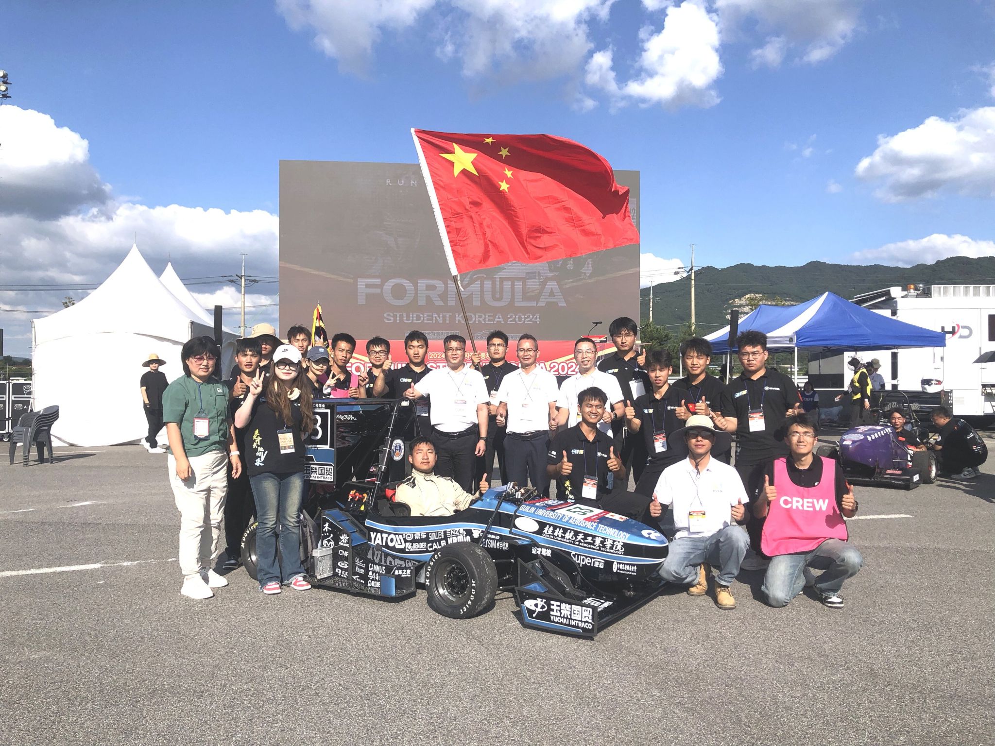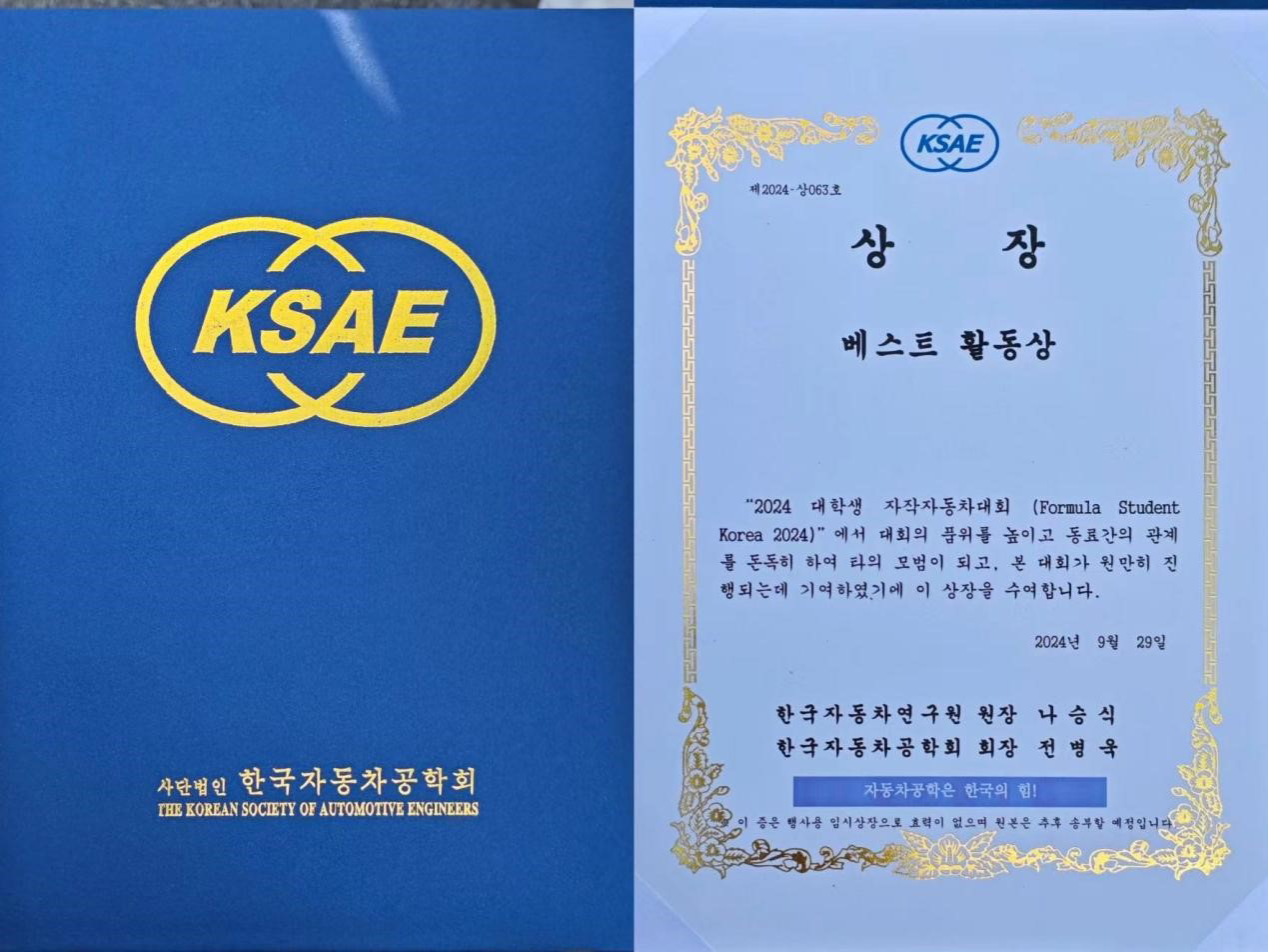 2024年韩国大学生方程式汽车大赛于9月27日-29日在韩国全罗南道灵光郡韩国电动汽车研究中心试验场举行,本届大赛共有54支车队参加。Beat365航V车队建队以来首次参加国外赛事,在此次比赛中充分展现了奋勇争先的团队精神和高超的技术水平,出色地展示了桂航学子风采,荣获优秀参赛团队奖。