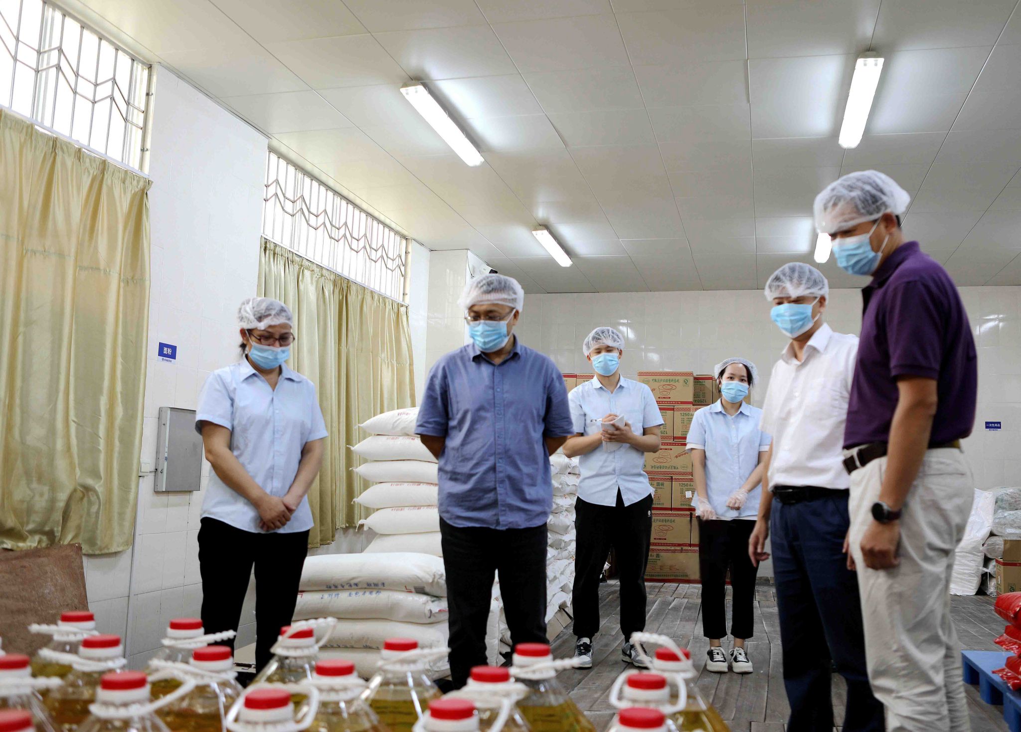 检查过程中,吴尽昭认真听取了当前学校食堂供餐工作情况的介绍,细致详细了解了学校食堂米、面、油及干杂配料等大宗物资的仓储及采购情况,并对食堂清洗间、切配间、面点间、蒸饭间、烹饪间等后厨操作间的食品卫生安全、消防安全等进行了深入检查。
