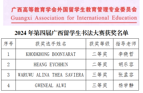 为弘扬中华优秀传统文化,推进书法技艺的传承与发展,增进国际友谊,促进多元文化的沟通交流,11月1日,Beat365留学生参加了由广西留管学会主办的第四届广西留学生书法大赛。