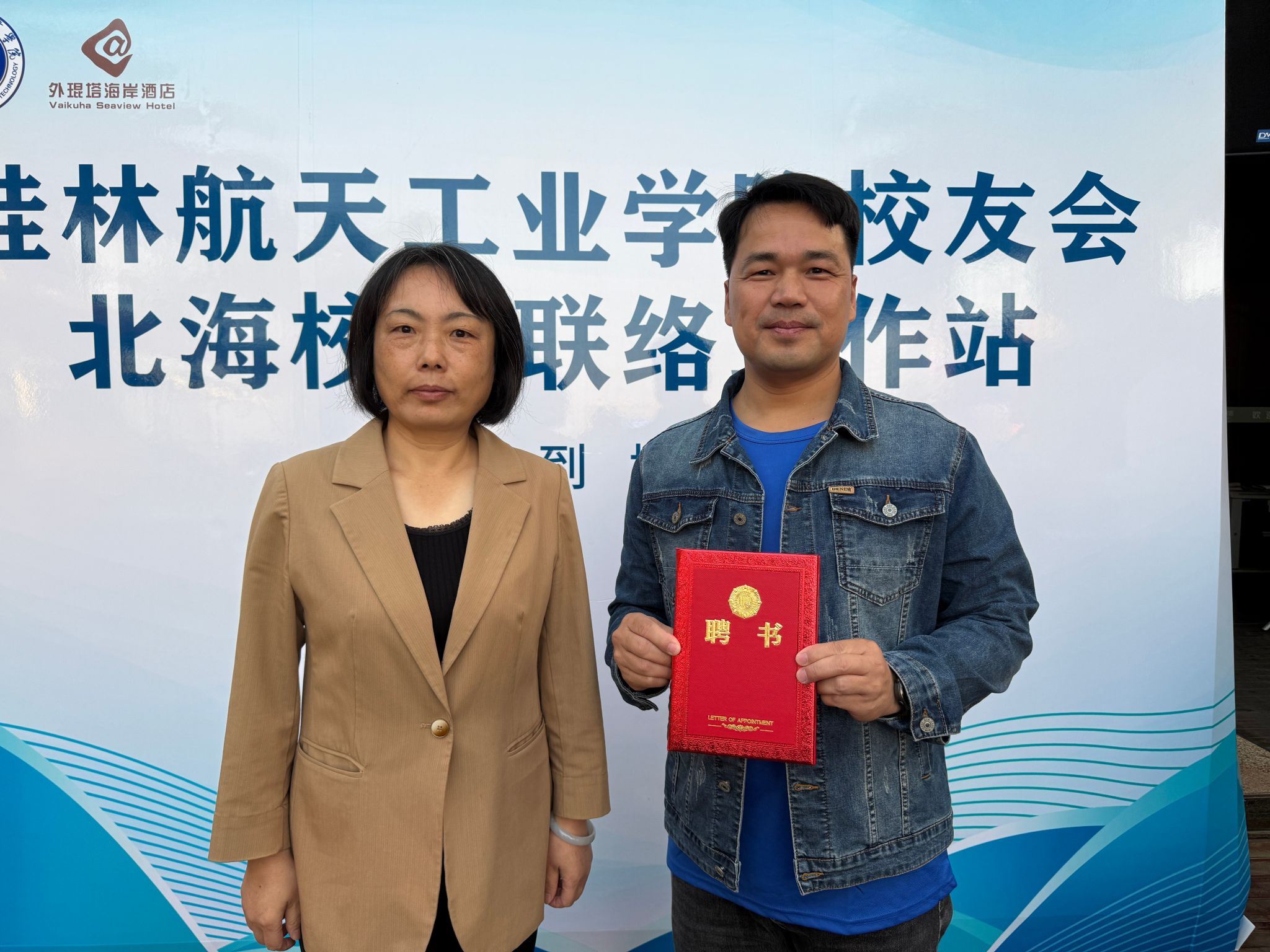 会议在校歌《蓝天是我们永远的向往》合唱的歌声中拉开了帷幕,会议首先由上一届校友工作联络站站长陈柏旭作了工作总结,他总结了近年来北海校友在服务母校、服务校友等方面的工作成效,感恩母校的对校友们的培养,并祝福下一届校友工作联络站班子工作更加的丰富。接着校友办相关负责人宣读了新一届校友工作联络站班子成员名单,与会领导为理事会成员颁发聘书。新任理事会负责人张广作了表态发言,今后积极推动北海校友间的联络,加强与母校之间的联系,凝聚校友资源、参与母校建设发展,促进校友与母校的共同进步。