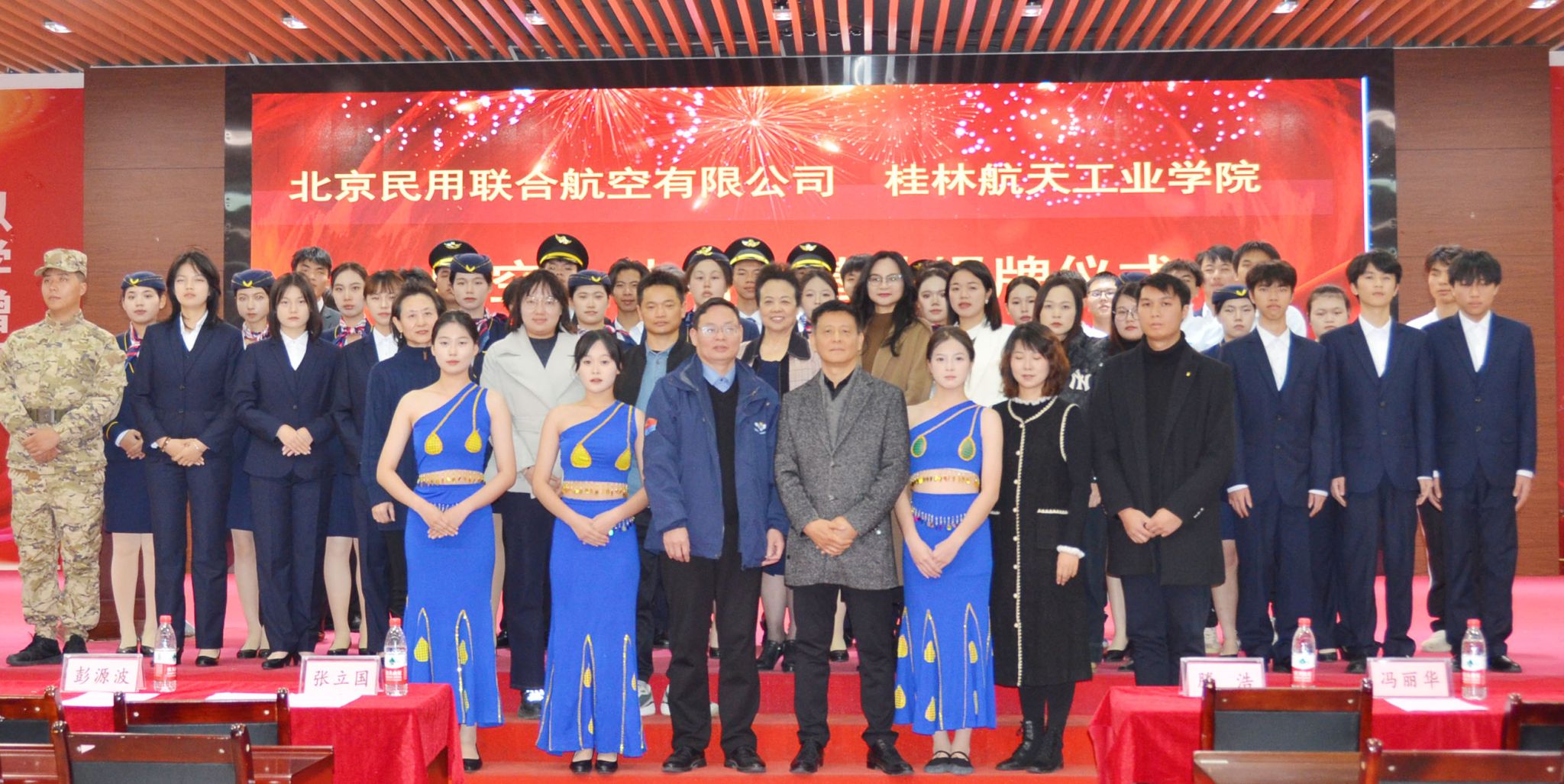 张立国向北京联航董事长滕浩一行的到来表示热烈欢迎,并对基地的顺利建成表示祝贺。仪式上,张立国与滕浩共同为培训基地揭牌,校企双方领导共同为学员集体授装,同学们以多种形式展示学习成果,赢得了现场热烈掌声。