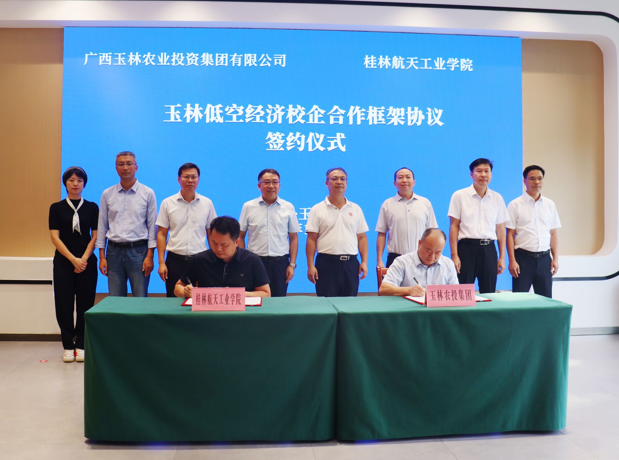 10月17日,学校与玉林农投集团签约低空经济校企合作框架协议签约仪式在广西玉林农业投资集团有限公司举行。玉林市委副书记邓国忠,玉林农投集团党委书记、董事长杨富源,董事、总经理吕祖荣,学校副校长张烈平出席签约仪式,玉林市发改委、玉林市国资委、玉林市科技局、玉林市投资促进局、玉林市市场监管局、玉林市农业农村局等部门领导,航空服务与旅游管理学院、科技处、广西(桂林)低空旅游研究院相关负责人参加签约仪式。