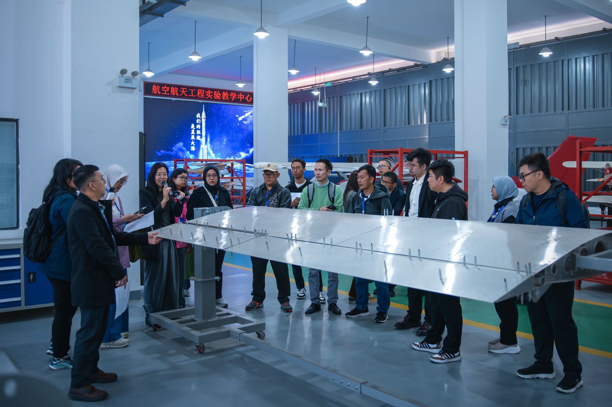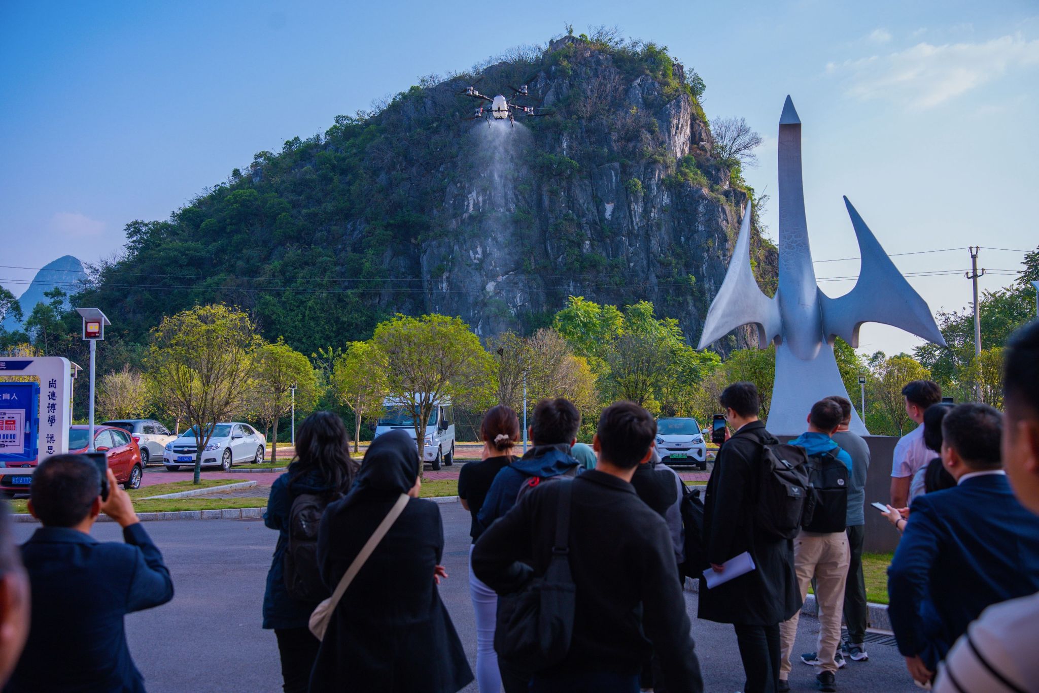活动分为成果展示与座谈交流两个环节。在成果展示环节,重点介绍了在低空科技领域的教学科研成果,并组织了无人机试飞演示。现场展示了无人机在控制精度与飞行稳定性方面的优异性能,以及在农业喷洒、物资运输等场景中的实际应用,充分彰显了学校在该领域的技术积累。在座谈交流环节,张烈平对与会嘉宾表示诚挚欢迎,并强调了中国与东盟国家在人工智能领域深化创新合作的重要意义。他表示,学校将以此次研修班为重要契机,积极构建与东盟国家在科研协作与人才培养方面的合作桥梁,共同推动人工智能技术的进步与落地应用。